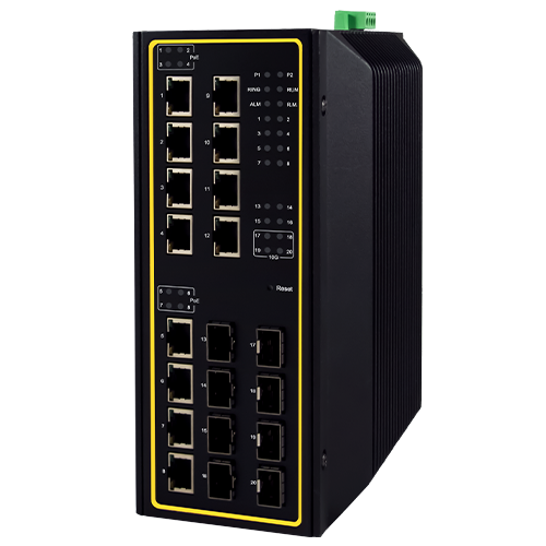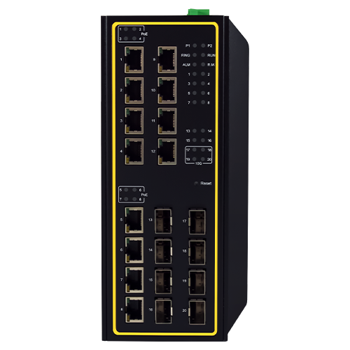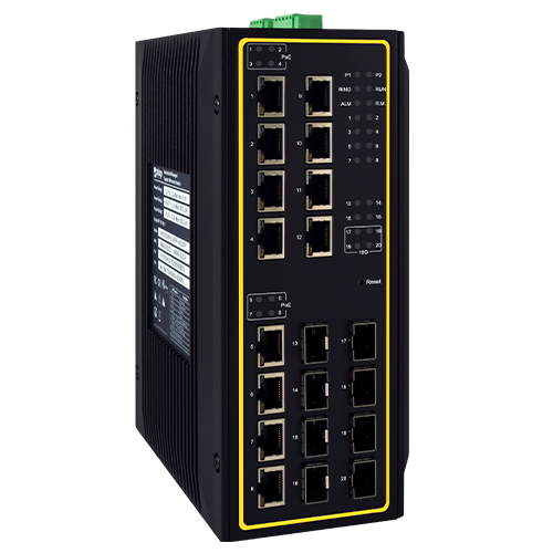 Commutateur PoE Gigabit industriel de couche 3 à large bande passante, 20 ports