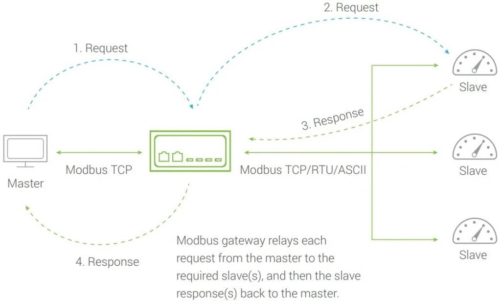 La passerelle Modbus prend en charge le protocole Modbus standard et est capable de convertir tous les protocoles Modbus entre Modbus TCP, Modbus RTU et Modbus ASCII pour toutes les interfaces matérielles prises en charge. Le tout en mode bidirectionnel : les extrémités Ethernet et série peuvent être sélectionnées comme maître ou esclave.